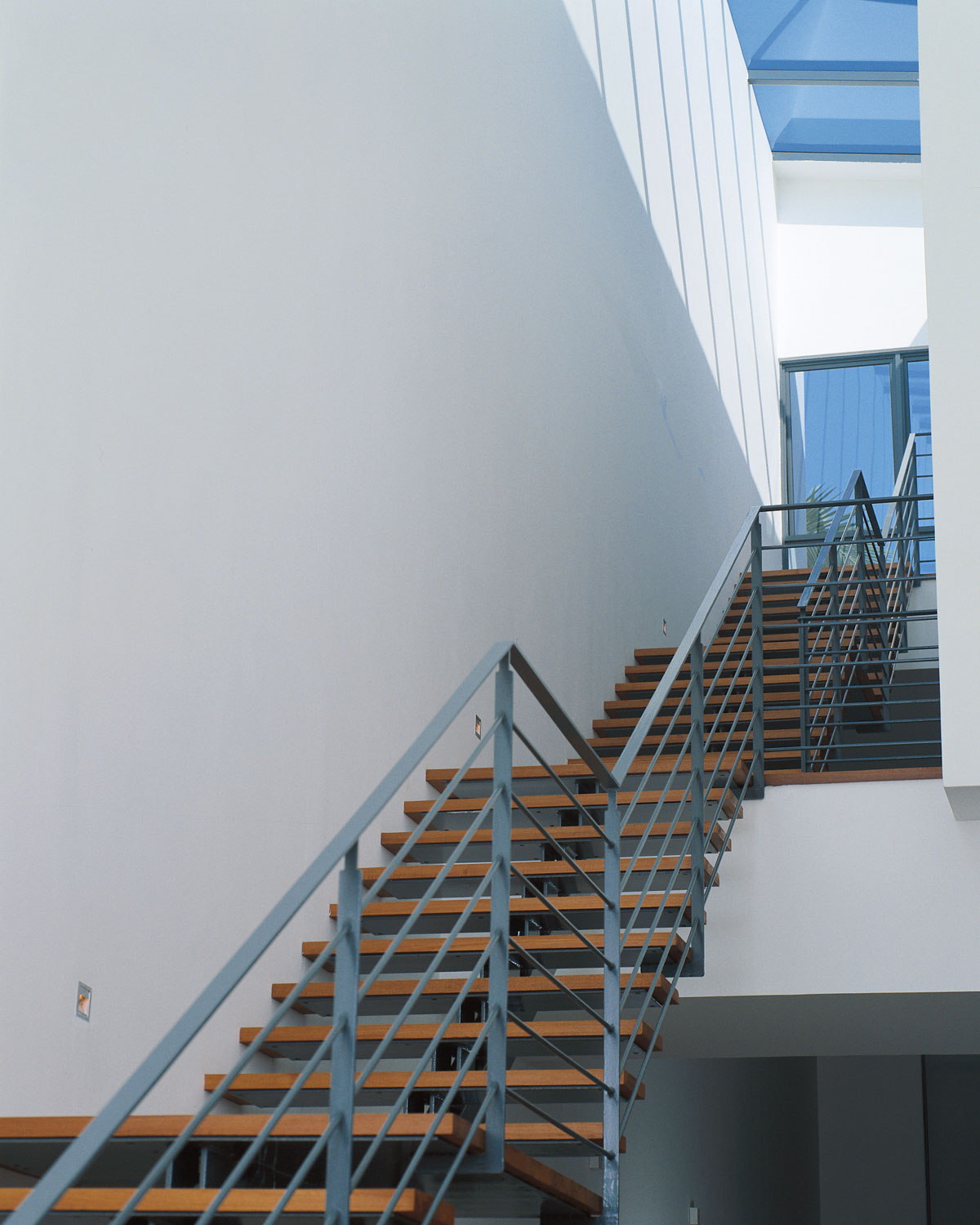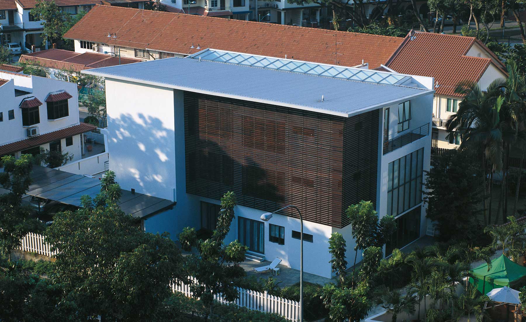 Modern but not cold, a double volume living area was created with an equally impressive skylight over the lenght of the entire 3 story staircase. Catering to the family members' different tastes, an interior design scheme neutral enough for anything was created. Each floor of the 3 storey semi-detached house is self-contained so that the different family units can have privacy.