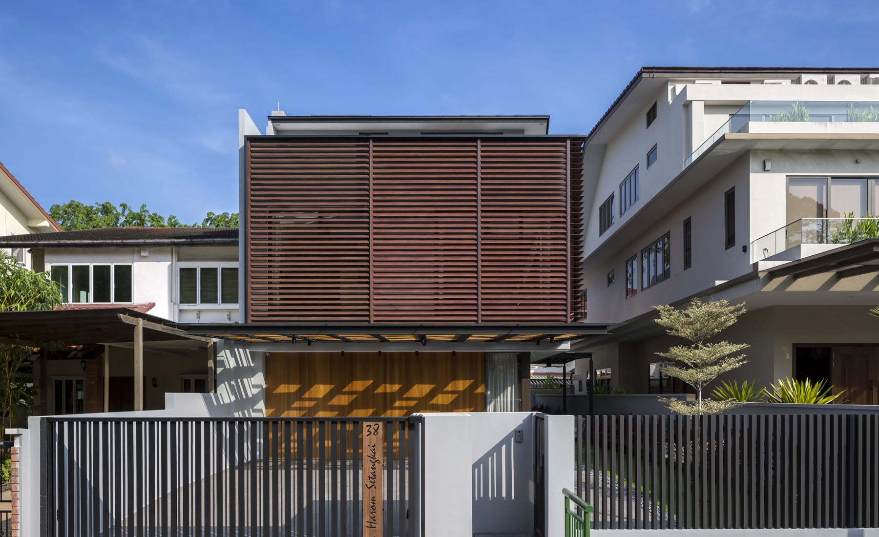 Entering the home, sunlight from the various skylights and air wells filter gently into the ground floor living space, bringing in the warmth of the tropical sun but also allowing the heat to dissipate. With the various elements of climate responsiveness that aim to maximize light and reduce heat, the house is a screenshot of the tropics, an exemplar illustration of the warmth and passive nature of tropical living.