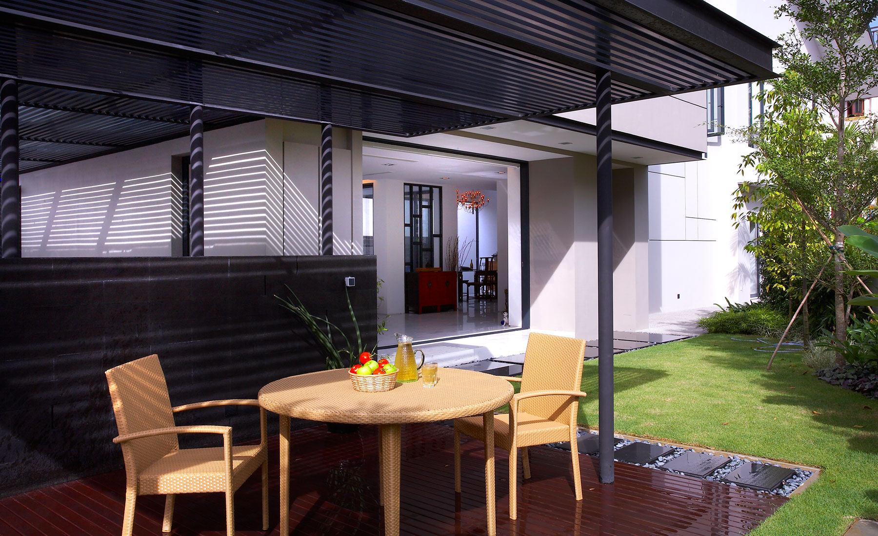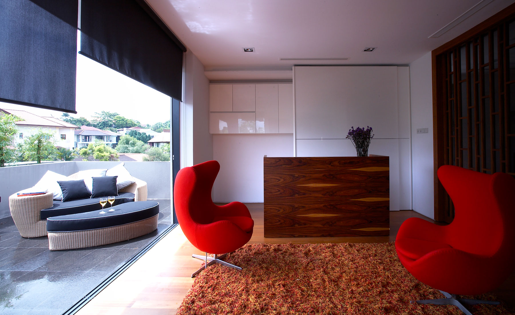 A light-filled open-plan home characterised by double-height areas and a seamless flow of space. Cooling breezes flow throughout the home as a result of its efficient new layout, conceptualised after an intensive on-site study of the weather conditions at the house. A pool nestled unusually by the side of the property was placed "to induce a cooling draft to occur". This flows into the living room and dining area flanking it, then into the bedrooms upstairs.