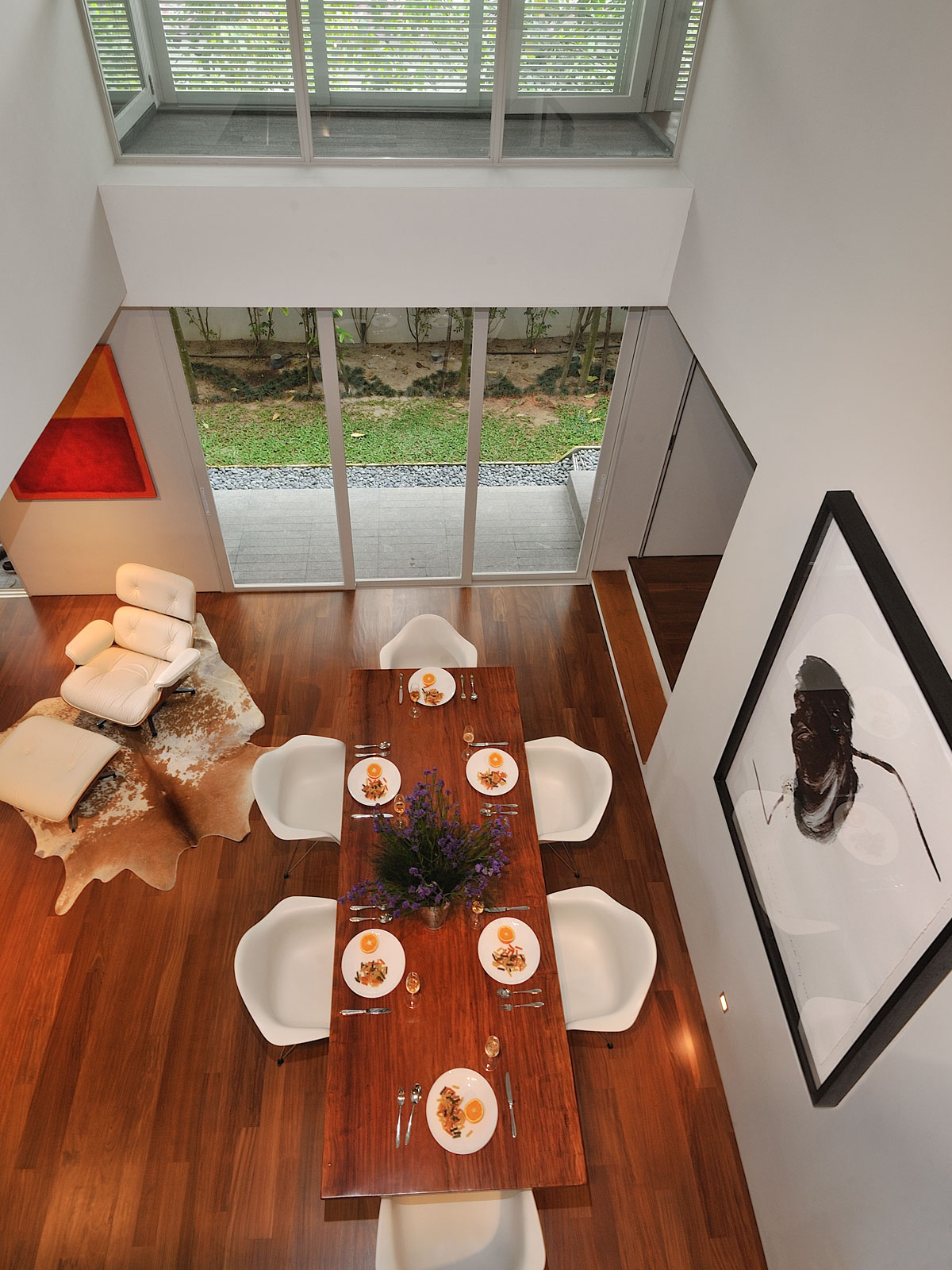 The interior living and dining was design to form a single entity so as to allow our client’s guests to mingle when entertaining. The elevated kitchen opens to the garden which overlooks to the living and dining and acts as a point when entertaining.