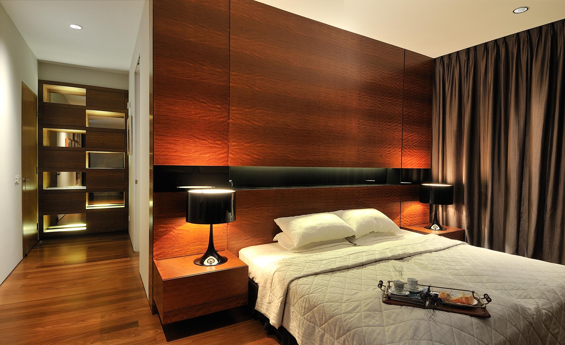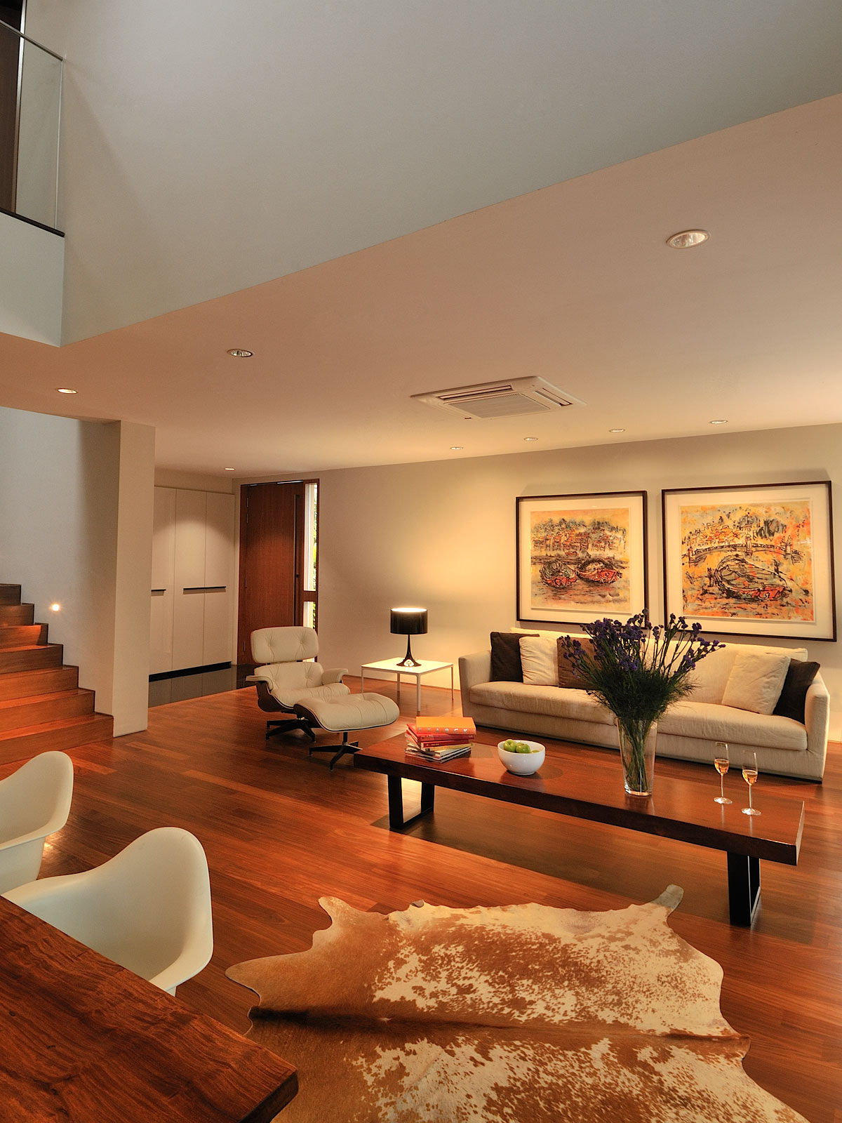 Existing stairs was relocated to the side and a void was introduced above the dining so as to allow interaction between the different spaces. The master was relocated to the front with a balcony and a luxurious walk-in closet with lots of spaces.