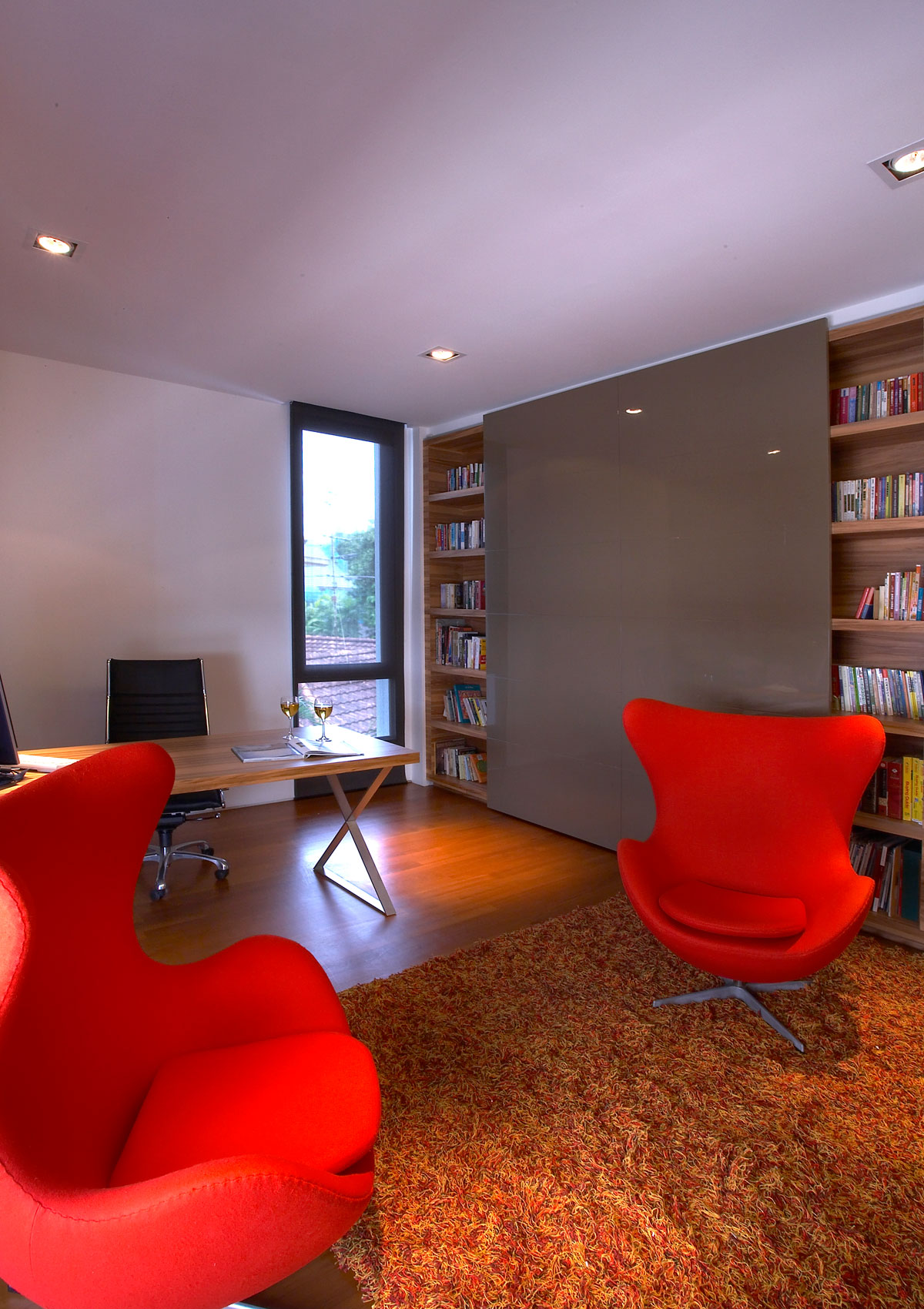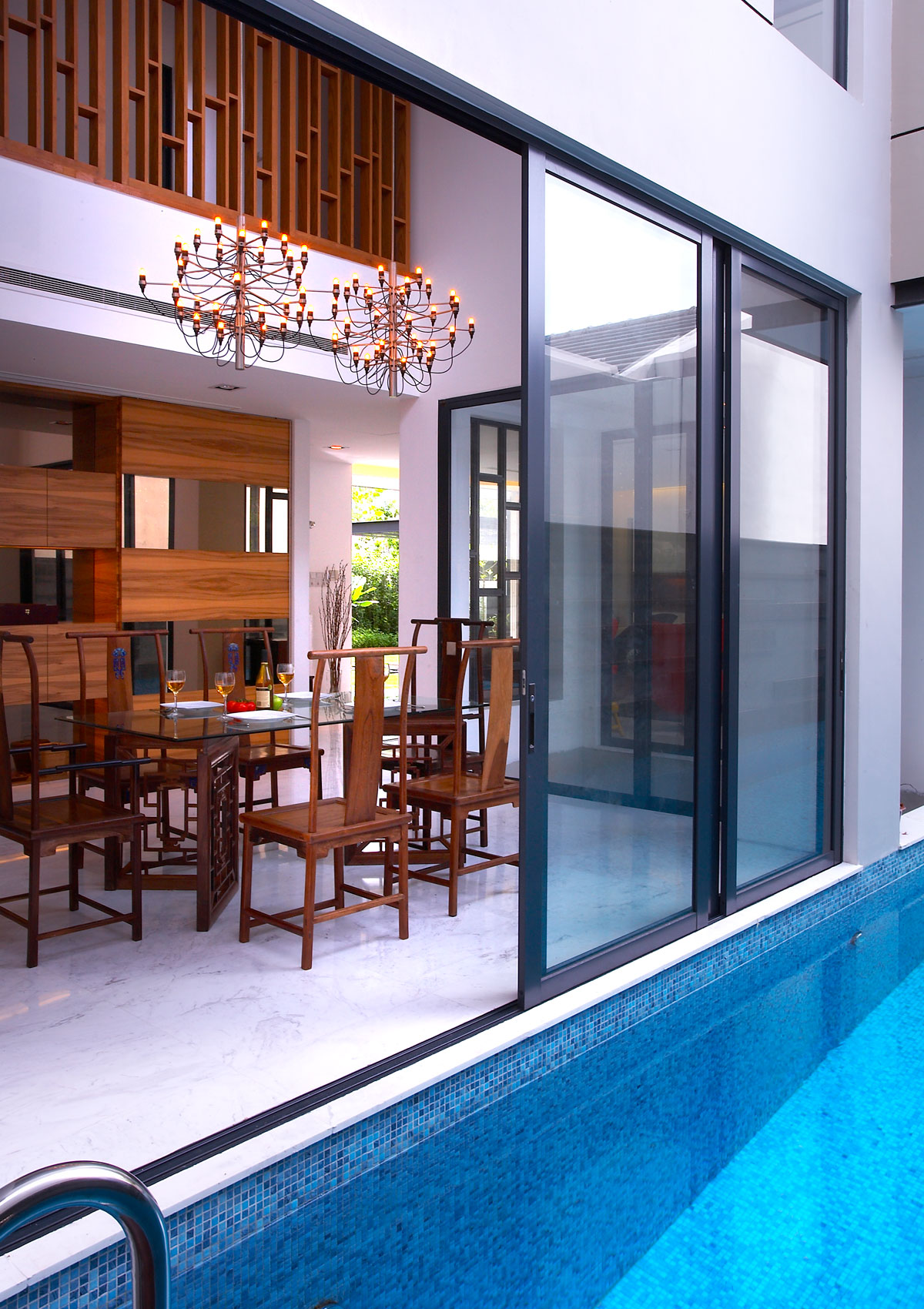 A light-filled open-plan home characterised by double-height areas and a seamless flow of space. Cooling breezes flow throughout the home as a result of its efficient new layout, conceptualised after an intensive on-site study of the weather conditions at the house. A pool nestled unusually by the side of the property was placed "to induce a cooling draft to occur". This flows into the living room and dining area flanking it, then into the bedrooms upstairs.
